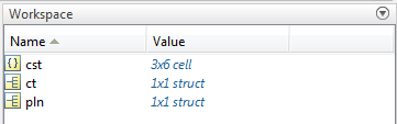 Now you can execute the first section. You should see, among others, the variables cst, ct and pln in your Workspace.